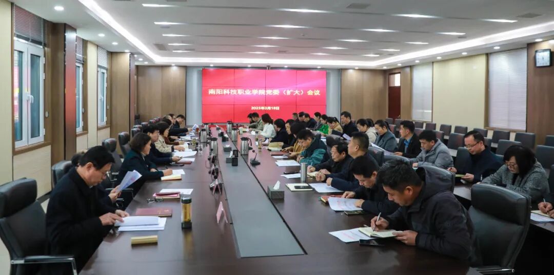 3月18日,南阳科技职业学院在七号楼一号会议室召开党委(扩大)会,学习贯彻习近平总书记关于深入贯彻中央八项规定精神学习教育的重要讲话和重要指示精神,结合实际安排部署我校学习教育工作。校班子成员、支部书记、副书记、各处室负责同志参加会议。党委书记李莉做专题讲话,会议由党委副书记黑晓森主持。