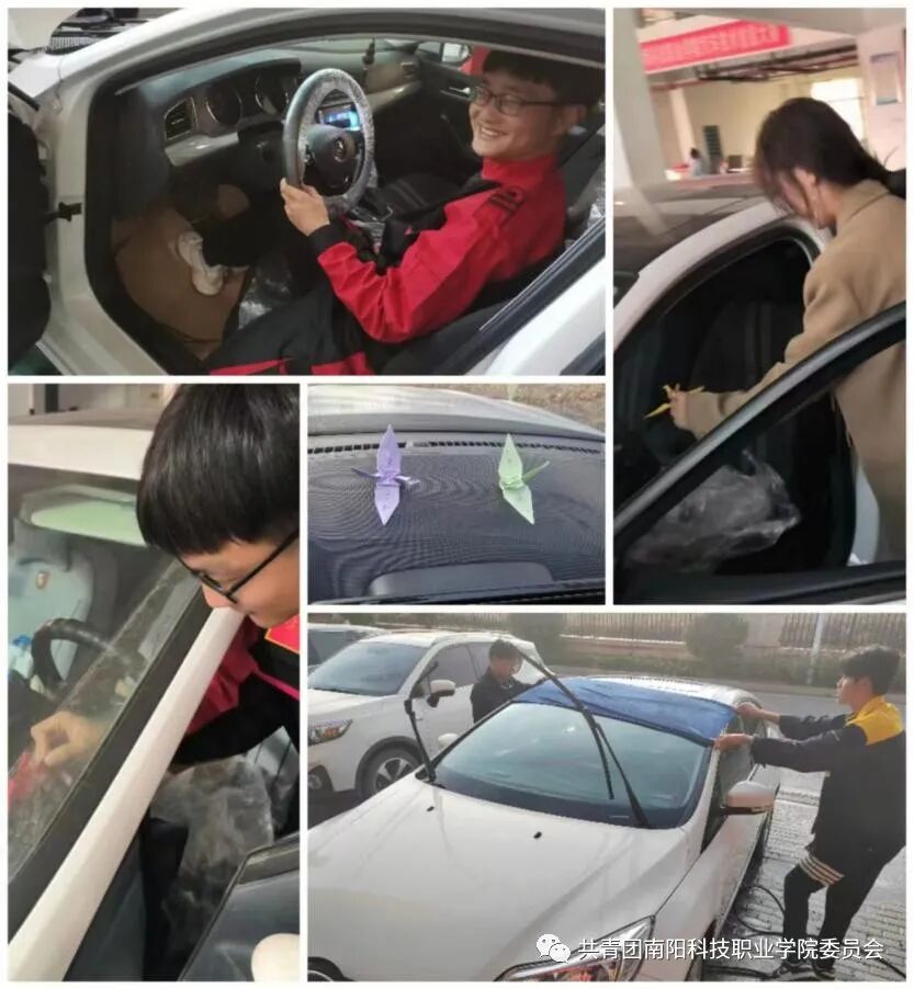 和煦的春风,忙碌的现场,志愿者们挥汗如雨,仔细检查着每一个零件与部位。每台车辆皆被擦得一尘不染,同时,还为每位参加活动的女教工送上千纸鹤,以表祝福!女教工们开心的说道在学校就能享受到4S店的服务,真专业!