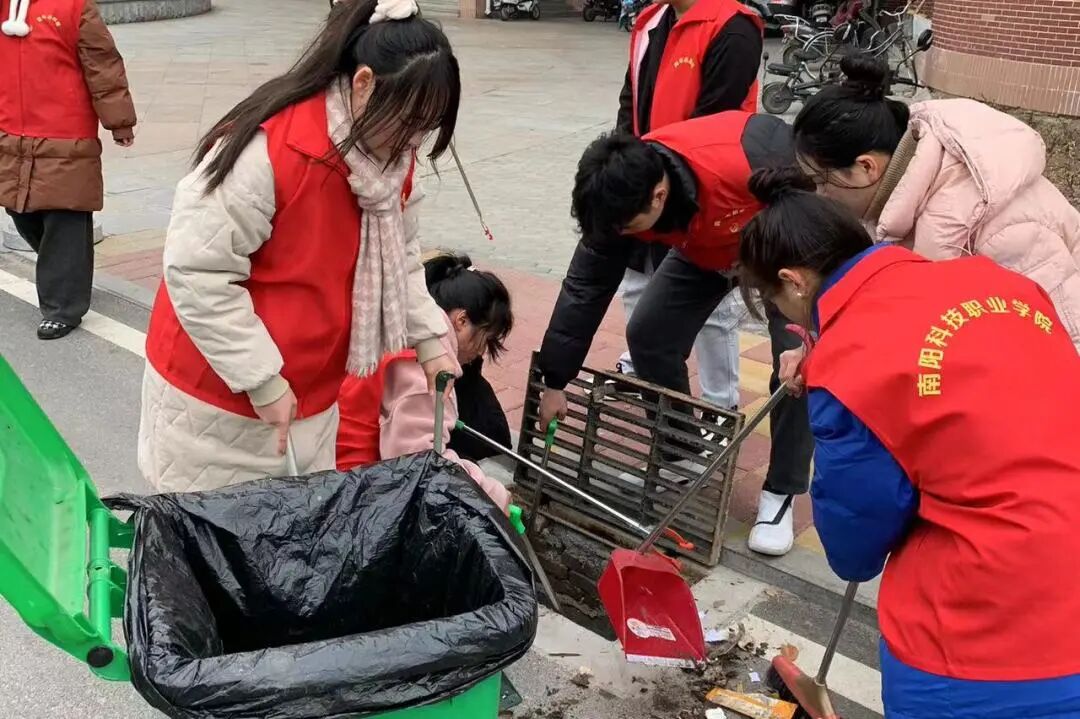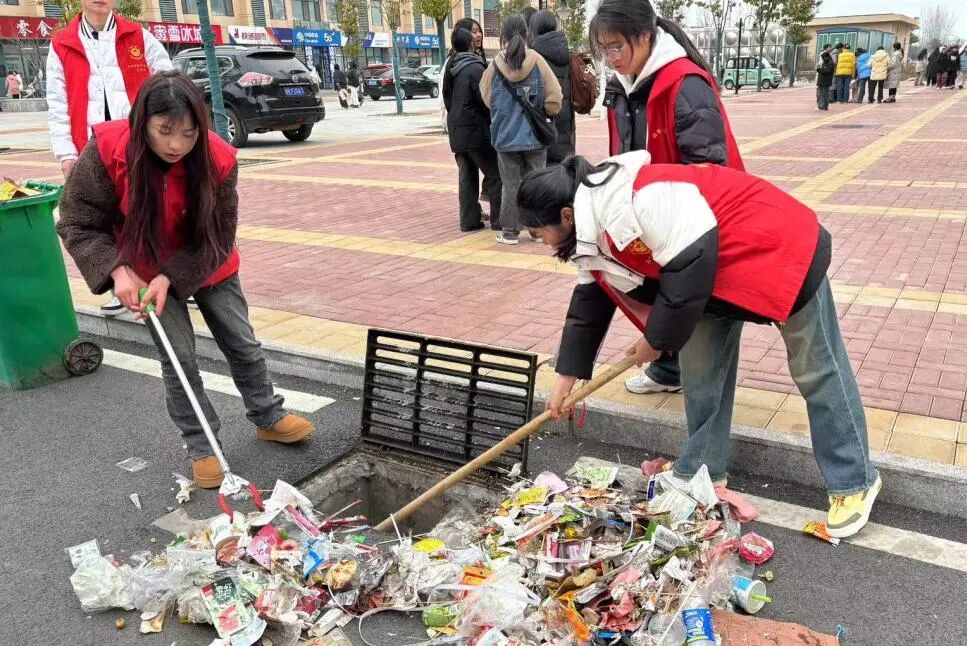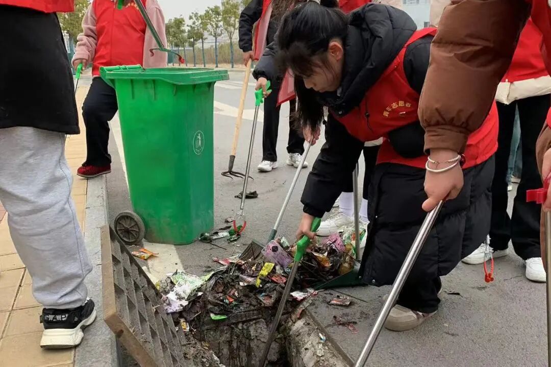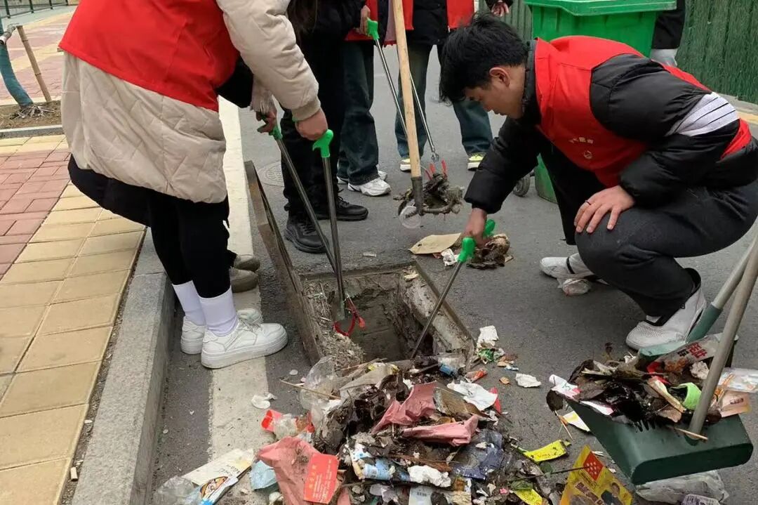 同时,志愿者还化身“宣传员”,劝导同学们爱护周边环境,拒绝乱扔垃圾、在雨水收集口堆积杂物等不文明行为,向同学们传递爱护环境、共创美好校园的理念,并动员他们积极投身卫生整治活动,营造浓厚的爱护环境氛围。