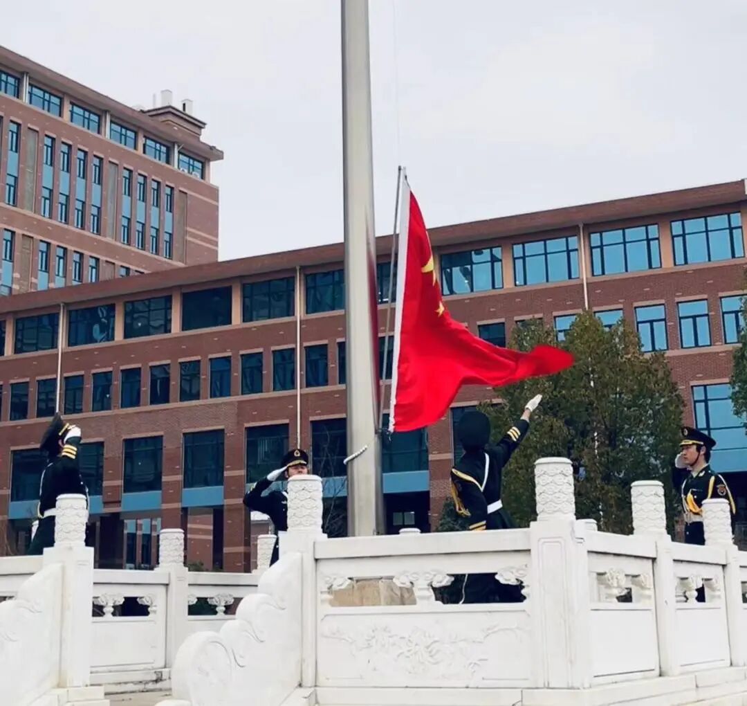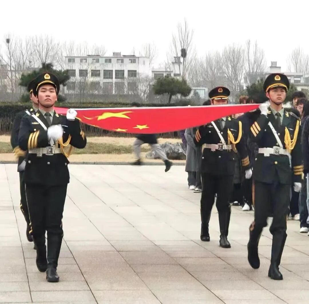 在《分列式进行曲》慷慨激昂的节奏声中,我校国旗班成员护卫着鲜艳的五星红旗,迈着整齐划一、铿锵有力的步伐,眼神坚定地走向升旗台。全体师生面向国旗肃立致礼。伴随着威武雄壮的《义勇军进行曲》,旗手振臂一挥,鲜艳的五星红旗徐徐展开,伴随着春风冉冉升起,在熠熠晨光中迎风飘扬,爱国之情和强国之志在师生们心中激荡。