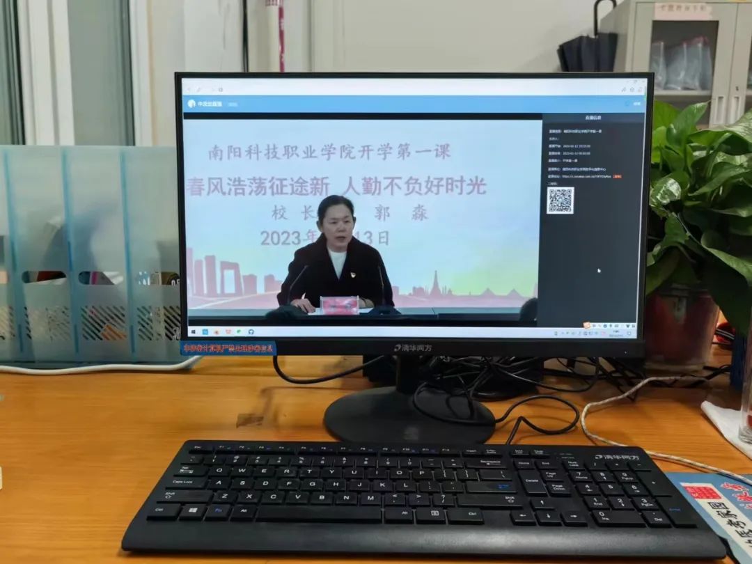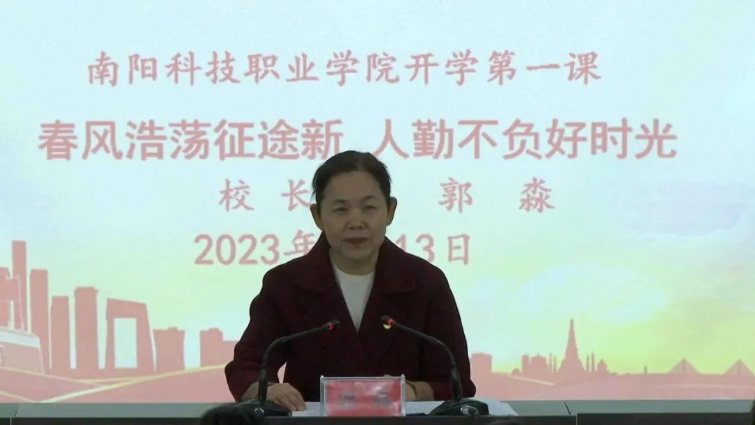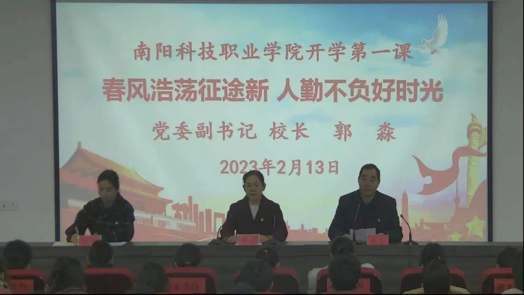 2023年2月13日,南阳科技职业学院举行了开学第一课暨本学期第一次升旗仪式,全校一万三千余名师生观看了本次直播,郭校长为大家带来了开学寄语,本次活动由学生处处长杨存及团委副书记杨萌主持,各学院团学干部共二百余人在主会场现场聆听,其余学生于分会场通过班级直播系统观看。