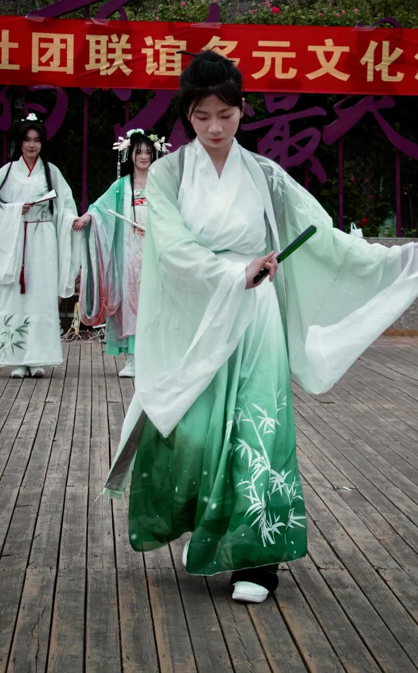 汉服社团的精彩演绎,一场美轮美奂的朝代复原秀,让我们仿佛回到了千年前的盛世,感受了千年风雅国韵。“罗衣何飘飘,轻裾随风还”,一场汉服秀把古典、含蓄、轻盈、飘逸之美体现得淋漓尽致……