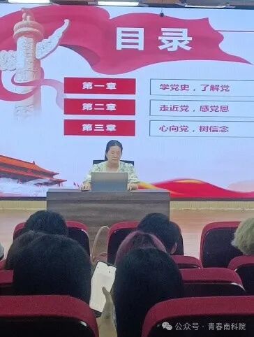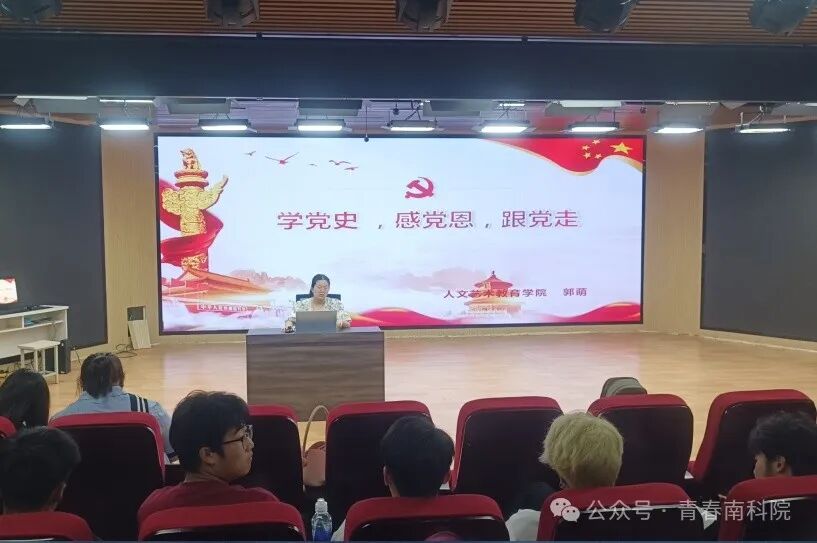 6月13日晚,人文艺术教育学院副院长郭萌为同学们讲授以“学党史 感党恩 跟党走”为主题党课,讲党史,铸心魂,传承红色基因。