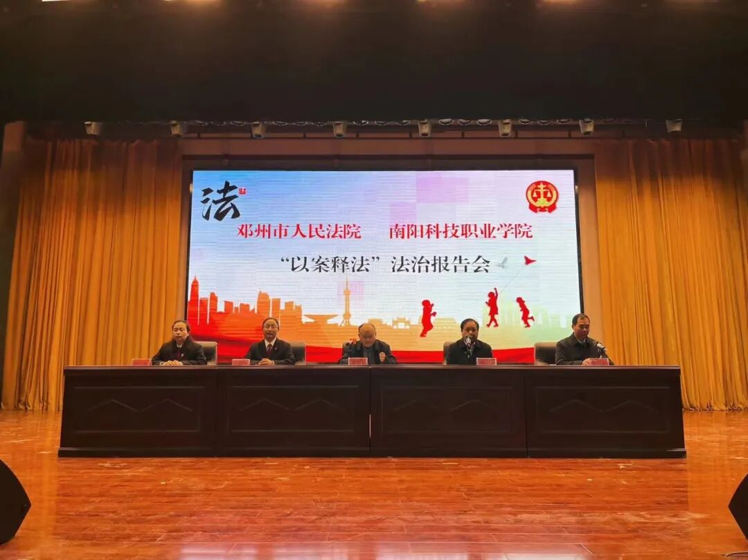 为帮助青年大学生树立法律意识、增强法制观念,2023年2月17日,南阳科技职业学院校团委联合邓州市人民法院,组织各学院团委学生干部来到会议厅,开展了一场严肃且充满意义的”以案释法“法制报告会。带领同学们观看学习,亲身体验“零距离”感受司法威严。