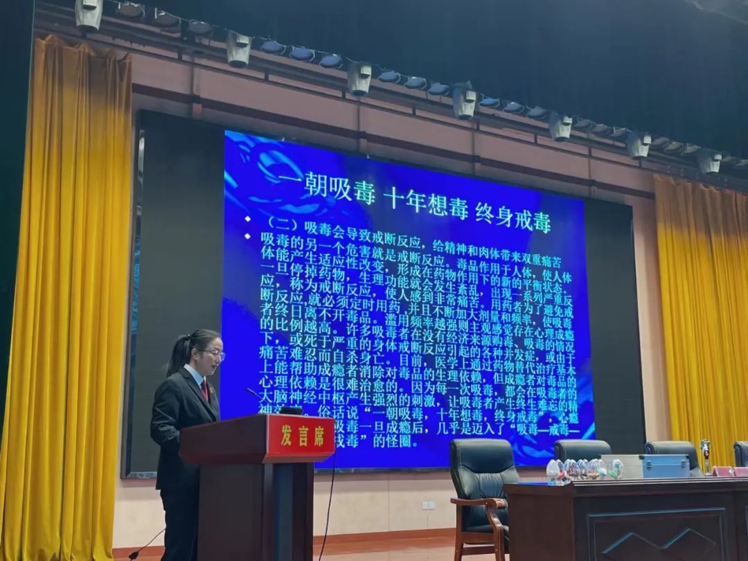 庭审结束后,南阳科技职业学院法治副校长、邓州市人民法院法官冀鹏翀拿着各种新型毒品的模型为我们展示讲解着吸食毒品的危害:它通过身体依赖性的产生、耐药作用的形成、强制性的觅药行为来控制我们的身体。简单来说,就是一旦沾染上毒品,就会离不开它,长此以往,身体各项机能会大幅度减退,器官衰竭、病变……继而运动困难,甚至走路都走不稳,同时出现思维迟钝、精神错乱的现象,严重者还会变得痴痴傻傻,脾气暴躁,甚至有暴力倾向!
