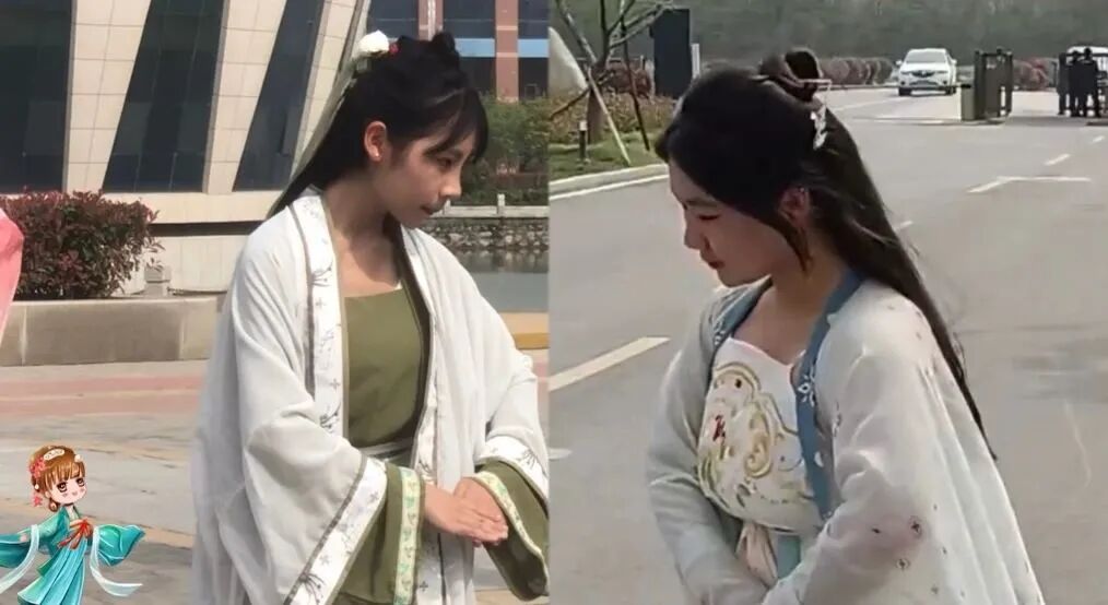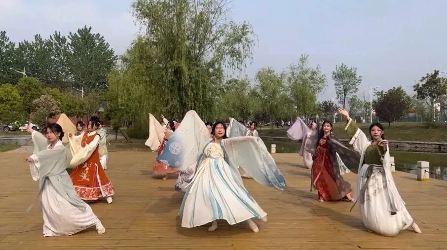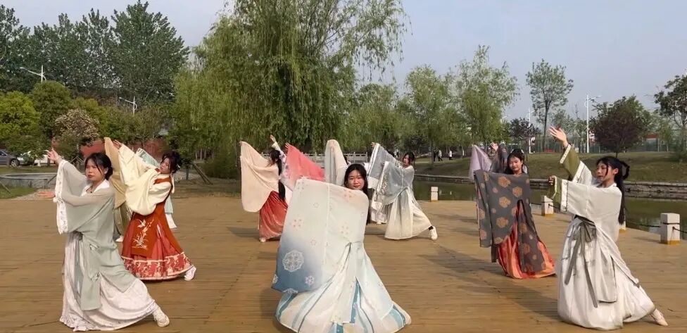 身着不同形制的汉服轻舒广袖