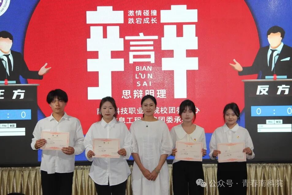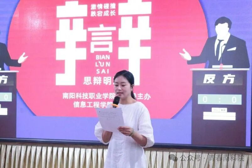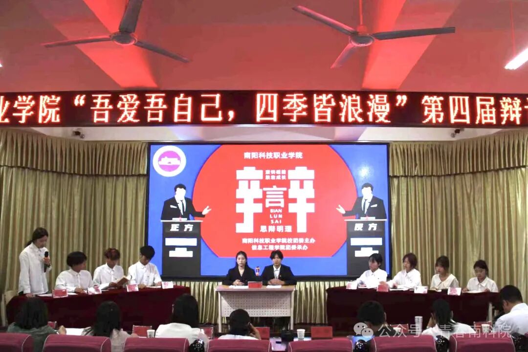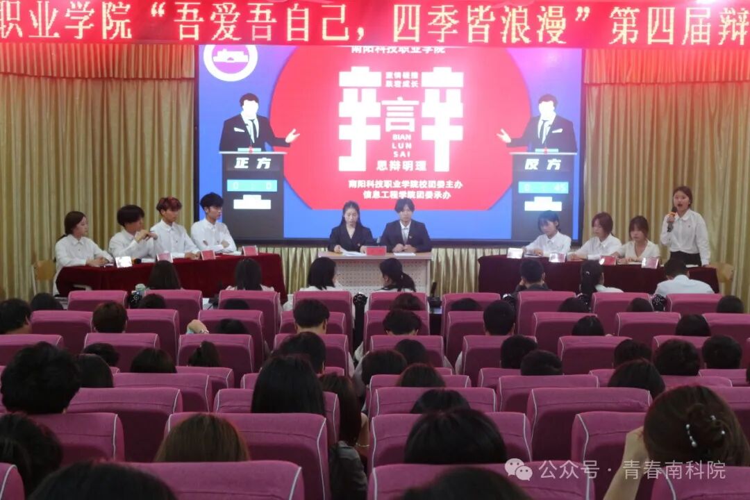 绿荫冉冉,浅夏悠悠,伴随着和煦的夏风,我们迎来了全国学生心理健康宣传教育月。为进一步加强新时代学生心理健康工作,更好地落实立德树人根本任务,丰富同学们校园文化生活,在实践中提升思维逻辑能力、语言表达能力和团队协作能力。5月23日至5月30日,历时一周的激烈角逐,南阳科技职业学院“吾爱吾自己,四季皆浪漫”第四届辩论赛在南区三师苑圆满落幕。由校团委主办、信息工程学院承办,团委书记杨萌、学生处副处长贺翔及信息工程学院院长、党支部书记出席活动,相关老师担任评委。