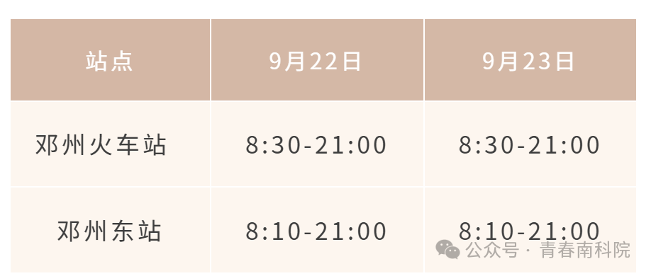 本次迎新接站,学校在邓州火车站、邓州东站均设有接站大巴,并配备站点志愿者和随车志愿者,一路送你到校园内,请各位同学及家长认准南阳科技职业学院接站牌及志愿者服装,谨防上当受骗。