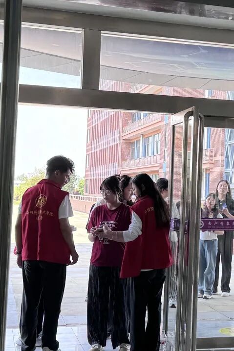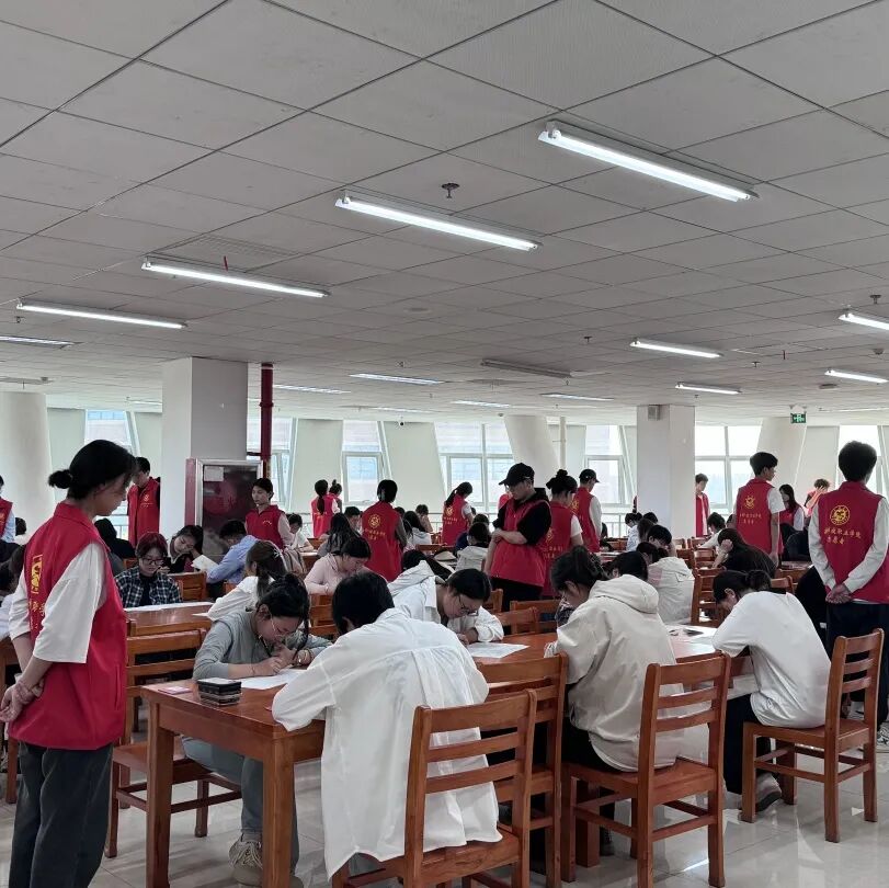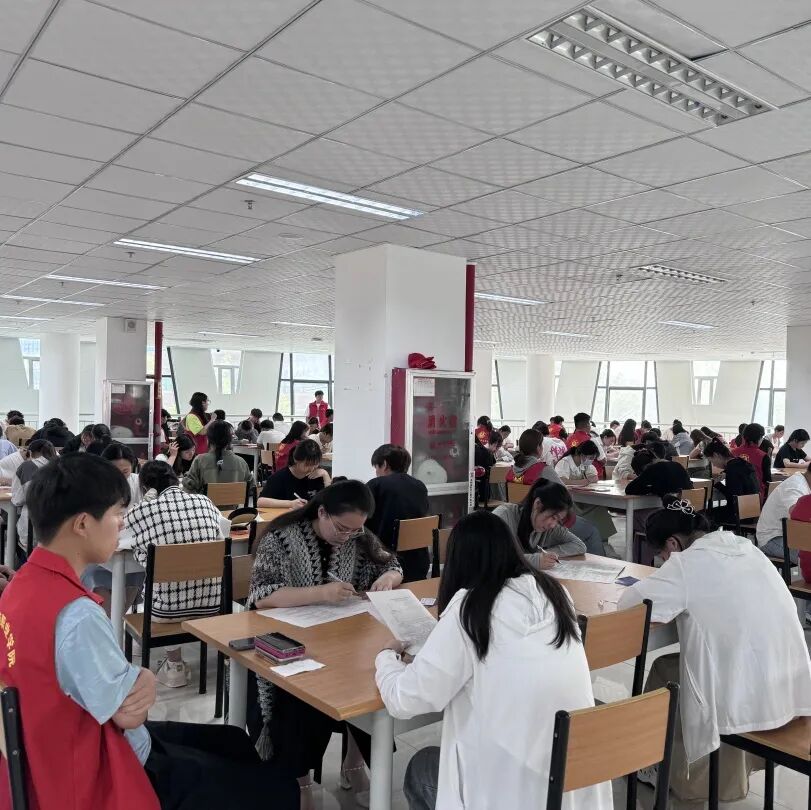 考试过程中,考生们低头沉思、奋笔疾书,用实际行动诠释着对中国共产党的向往和憧憬。负责监考的校学生会志愿者和学生干部们认真负责,严格按照考试规则进行监考,校团委老师们现场监督指导,确保考试顺利进行。