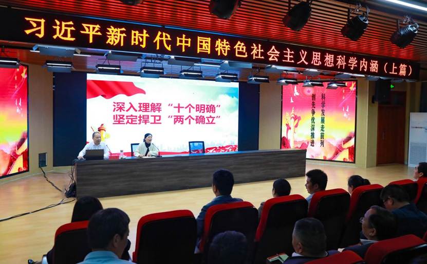 张定群同志紧紧围绕习近平新时代中国特色社会主义思想主要内容,以“科学”一词为切入点,将近代科技史的发展脉络同马克思主义哲学的内涵要义相结合,深刻分析了习近平新时代中国特色社会主义思想与其内在联系,讲述娓娓道来,分析旁征博引,举例生动实际,提高了广大党员对习近平新时代中国特色社会主义思想科学内涵的认识,增进了教师们立足学校发展新时期,奋进新征程的信心和动力。
