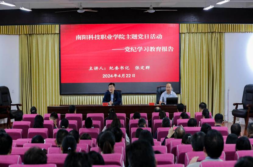 为深入学习习近平新时代中国特色社会主义思想,引导党员干部牢固树立党规党纪意识,坚守纪律底线,切实做到“学纪、知纪、明纪、守纪”,营造学校风清气正的良好氛围,4月22日下午,校纪委书记张定群在三师院报告厅,做了题为“以党的自我革命重要思想,引领推进全面从严治党”,的党纪教育报告,活动由党委副书记黑晓森主持,校领导班子成员、全体在职教师党员、中层以上干部参会。