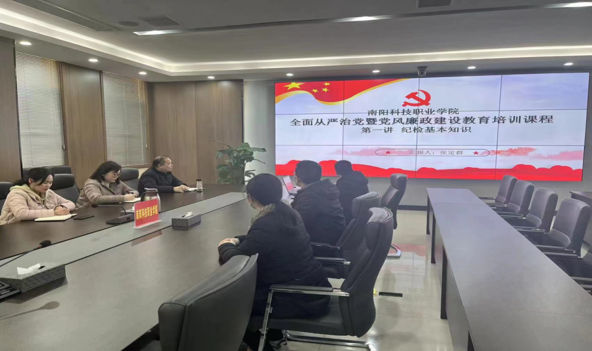 为加快提升学校纪检专业工作人员工作素质和水平,2023年1月6日下午,纪检监察处在南阳科技职业学院行政楼会议室组织开展业务知识培训会议,会议由校纪委书记张定群主持并担任主讲,全体纪检工作人员参加。