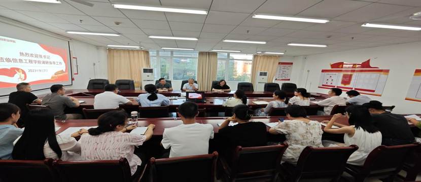 9月7日下午,学校纪委书记张定群深入信息工程学院调研秋季开学工作。校纪检监察处副处长陈煜烨、信息工程学院领导班子、各科室人员、教研室主任、全体党员及教师代表参加会议。