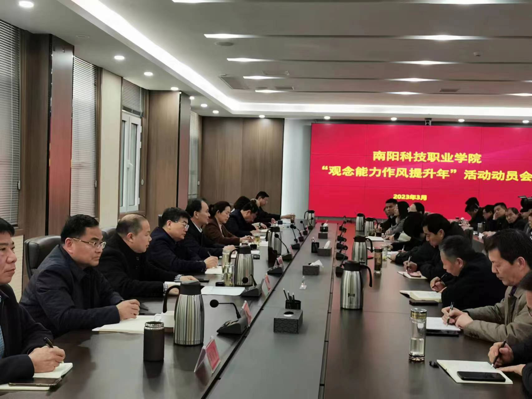 3月24日,南阳科技职业学院召开“观念能力作风提升年”活动动员会议。传达学习全市"观念能力作风提升年"活动动员会精神,安排部署学校"观念能力作风提升年"重点任务,党委书记卢明存出席会议并讲话,党委副书记、校长郭淼主持。