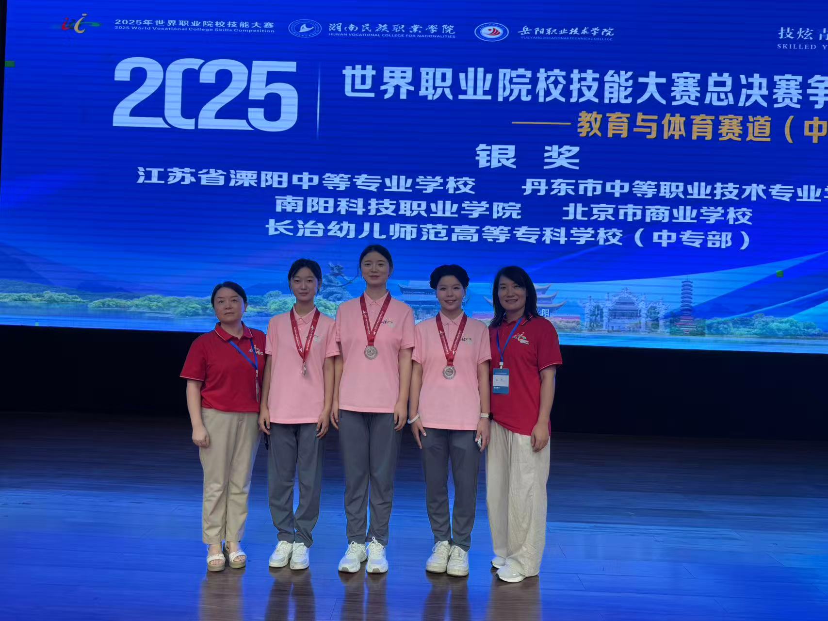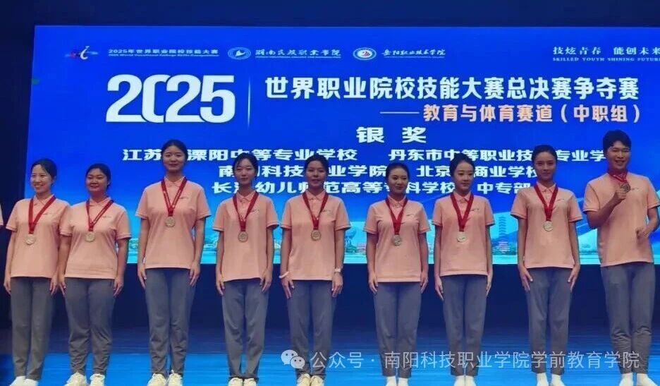 盛夏终章,捷报传响!在刚刚圆满落幕的2025年世界职业院校技能大赛总决赛争夺赛教育与体育赛道(中职组)中,我校学前教育学院学子刘文艺、郭甜甜、刘佳美3名同学组成的幼儿保育专业代表队,在辅导教师张鸽、王进的带领下凭借扎实的专业技能和精彩的赛场展示,从全国63支参赛队伍中脱颖而出,一举摘得全国总决赛银奖,为学校争光,为行业添彩!