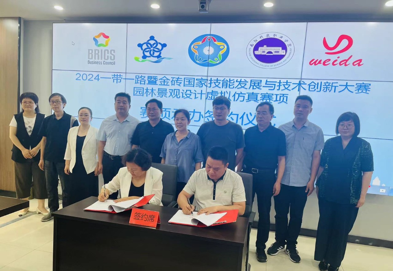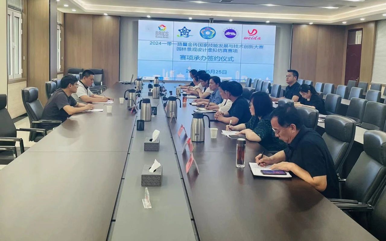 5月25日,我校在七号楼一号会议室举行2024一带一路暨金砖国家技能发展与技术创新大赛(园林景观设计虚拟仿真赛项)承办签约仪式。校长郭淼、副校长丁光雪及相关单位负责人与承办方河南伟达电子技术有限公司副总经理张强、营销总监李彬参加本次签约仪式。会议由丁光雪主持。