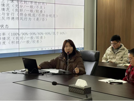 教务处副处长张兵怡带领参会人员共同探讨了《南阳科技职业学院教学纪律督查实施方案》、《南阳科技职业学院教师课堂教学质量督查实施方案》。学校将建立“学院日查+校级抽检”两级教学纪律督查体系,实行教学事故分级量化考核,将意识形态督查纳入教学日志常态审查。同步推行课堂教学质量“三阶预警”机制,通过80分红线指标实施教师约谈、评优限制及岗位调整。创新实施教研室月度全覆盖听课、实训室轮转使用等机制,将教学事故、听课评分与二级学院年度考核直接挂钩。目前全校正有序推进3月技能达标月活动,同步完成考试周教学调整,为阶段性教学评估做好衔接准备。