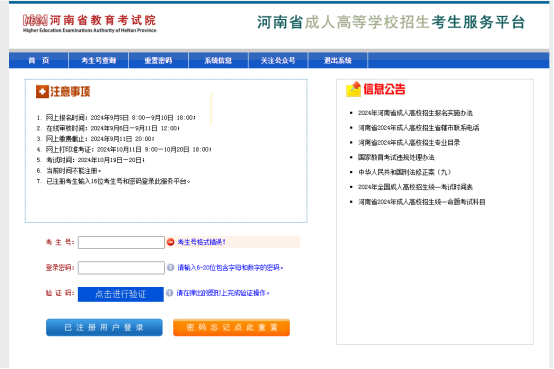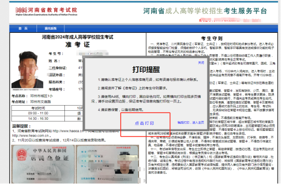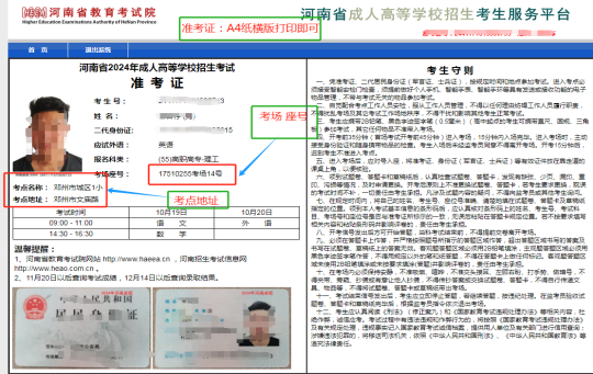 二、河南省成人高考准考证打印流程