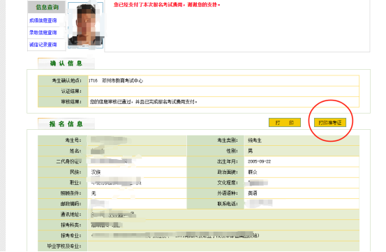 (3)打印准考证