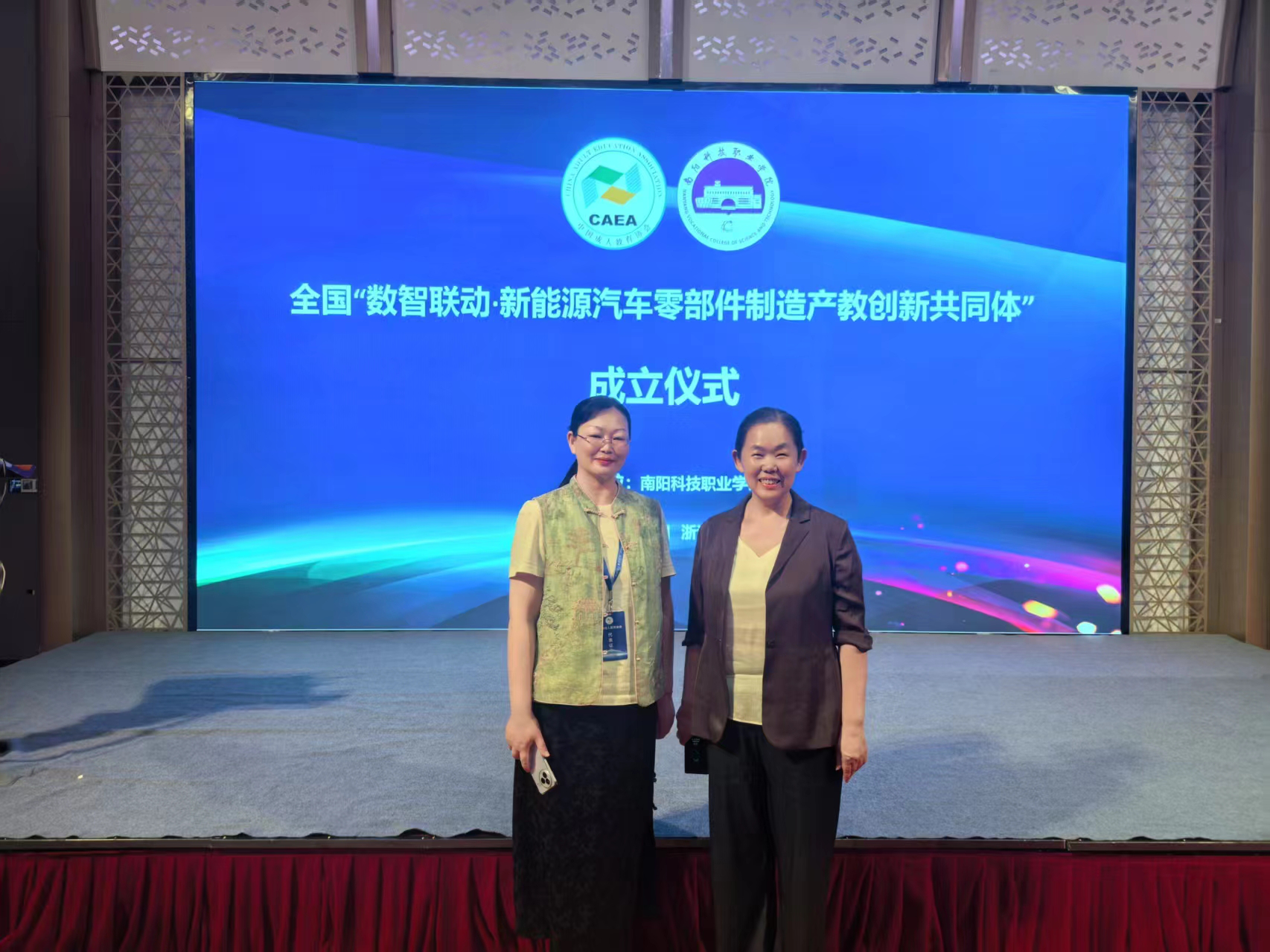 在开幕式上,中国成人教育协会正式授予我校第二批“全国继续教育发展共同体项目”组长单位称号。这一殊荣不仅是对我校长期以来在继续教育领域工作的充分肯定,更赋予了我校引领共同体创新发展的重任。作为新任组长单位代表,吴英迪在会上作专题招募报告,全面展示了我校在新能源汽车零部件制造领域的核心优势与前瞻性发展规划,彰显了学校推动共同体高质量发展的坚定信心。报告内容翔实、目标清晰,获得与会代表的高度评价,并成功吸纳多家优质成员单位加入。