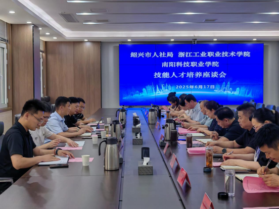 6月17日,绍兴市人力资源和社会保障局职技中心副主任凌军、职技中心科长谢戬堃及浙江工业职业技术学院继续教育学院院长潘钧飚、副院长赵军、综合办公室主任耿国耀到我校交流考察,南阳科技职业学院校长郭淼、副校长袁基干、刘彦及教务处、人事处、招生就业处、各二级学院负责人参加交流座谈,会议由刘彦主持。