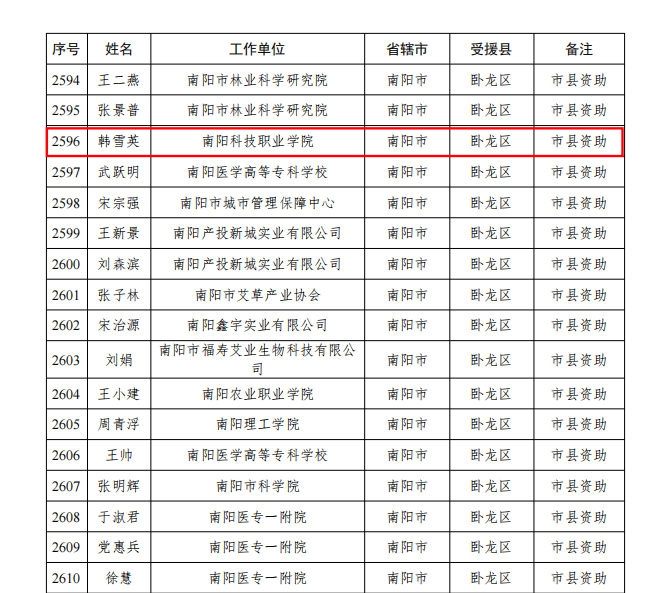 喜报:韩雪英博士入选南阳市2025年科技特派员