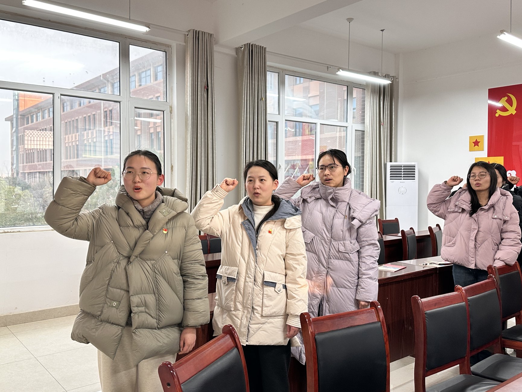 活动同步推进组织建设工作,严格依照《中国共产党发展党员工作细则》,讨论通过两位预备党员按期转正决议,并为新发展教师预备党员举行入党宣誓仪式。全体党员共同重温入党誓词,强化了身份认同与使命感,凝聚起不忘初心、砥砺前行的奋进力量。
