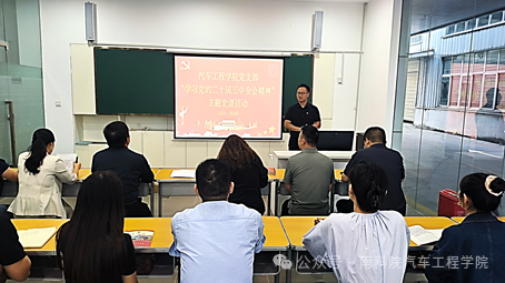 9月23日,汽车工程学院举行了“学习贯彻党的二十届三中全会精神”主题党日活动,此次活动由我院党支部书记徐超毅主讲,支部全体党员及积极分子参加,会议由组织委员屈守珍主持。
