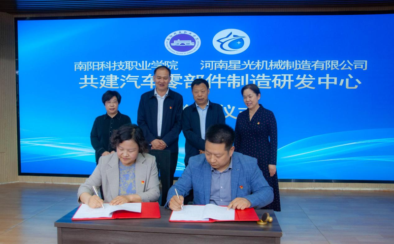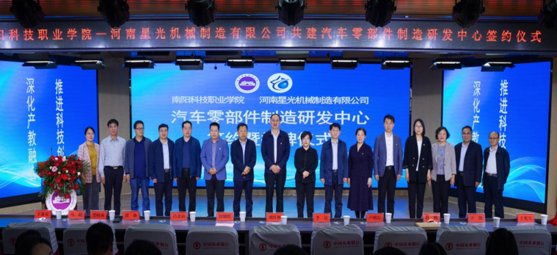 4月24日,我校与河南星光机械制造有限公司在北区报告厅举行校企共建汽车零部件研发中心合作签约暨揭牌仪式。邓州市政协副主席刘红彬,邓州市先进制造业开发区党工委书记、管委会主任赵明辉,邓州市科工信局党组书记吕忠山,邓州市科学技术协会党组书记赵鹏,河南星光机械制造有限公司总经理李达,我校党委书记卢明存、校长郭淼及领导班子成员出席签约暨揭牌仪式,学校各处室负责人、智能制造学院及汽车工程学院师生代表共计300余人参加了本次活动,仪式由郭淼主持。