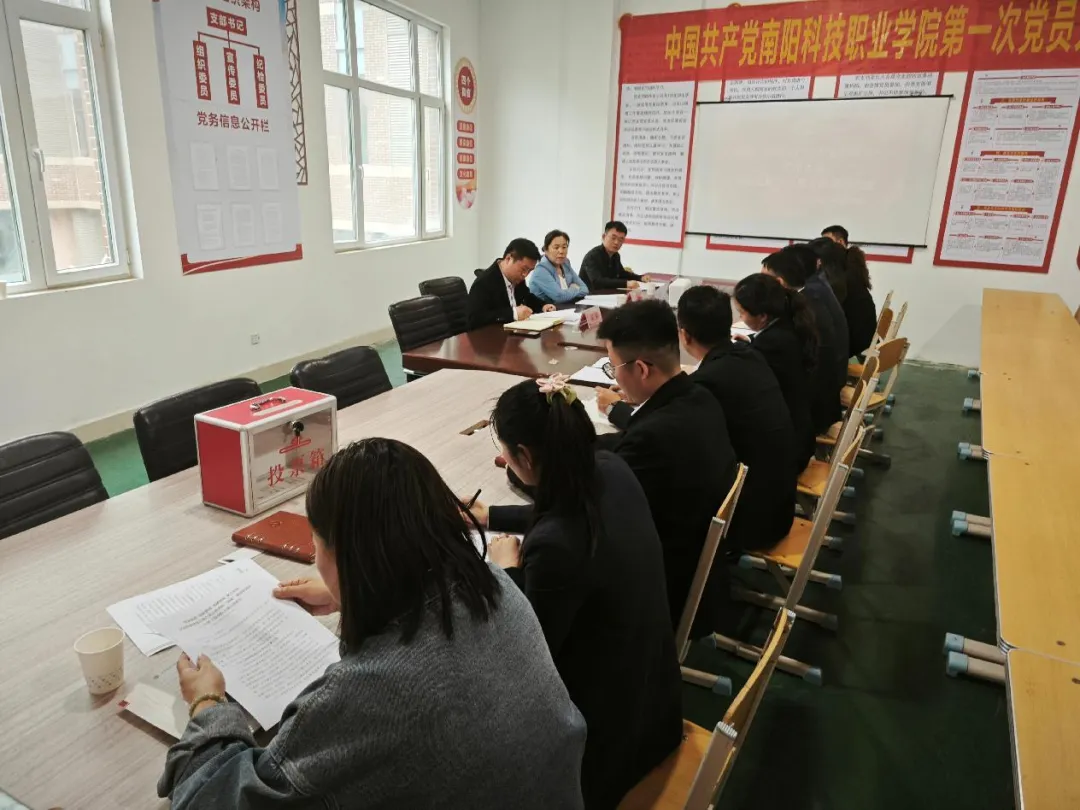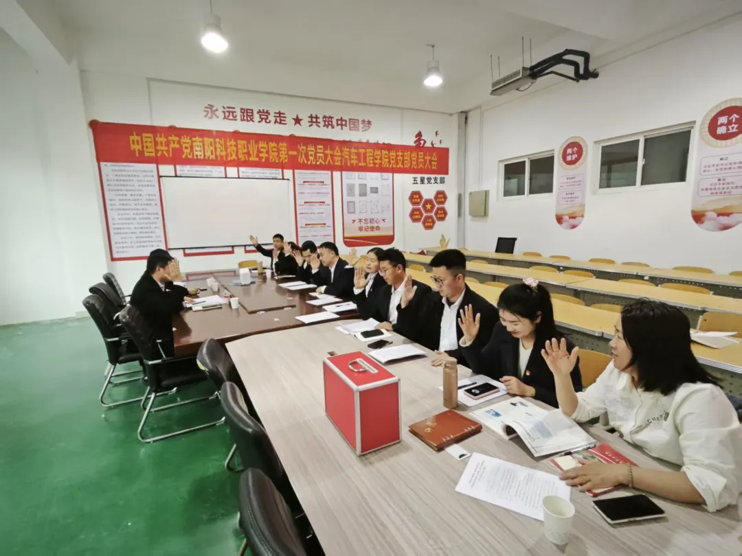 2025年3月27日,中共南阳科技职业学院汽车工程学院支部党员大会在庄严的国歌声中拉开帷幕。会议严格遵循《中国共产党章程》《中国共产党基层组织选举工作条例》要求,圆满完成支部工作报告审议、新一届支部委员会委员选举等议程。南阳科技职业学院校长郭淼同志到会指导,支部15名党员参会,符合法定人数要求。