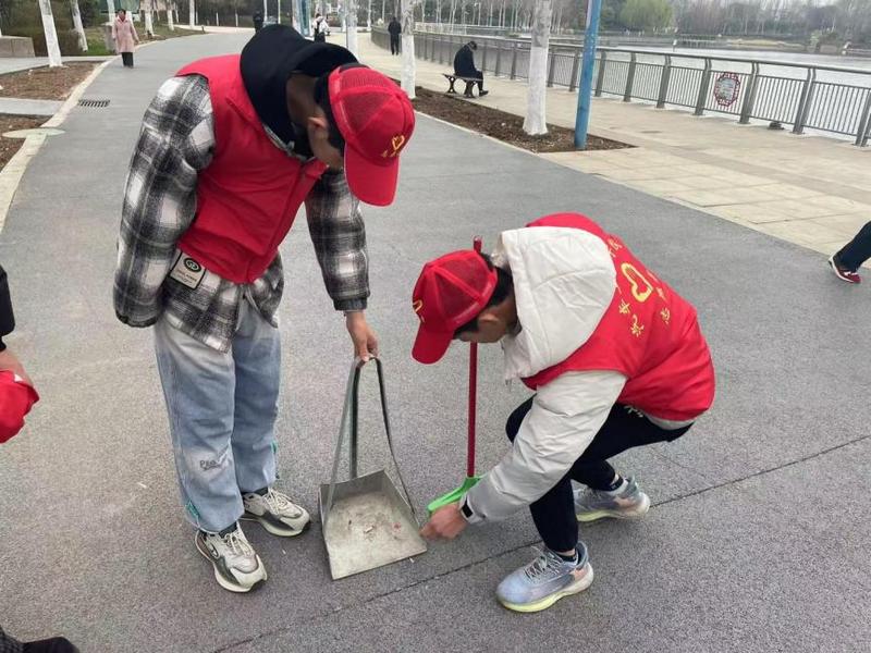 2025年3月14日,邓州市明珠湖公园迎来了一场特别的环保活动。汽车工程学院的学生志愿者们身着红马甲,手持清洁工具,积极参与垃圾清理、绿化维护等志愿服务,用实际行动践行环保理念,展现了新时代青年的责任与担当。