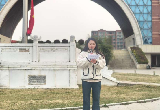 紧接着,由教师代表孙静老师作了题为"传承英烈精神,肩负时代使命"的发言。她号召全体师生要以实际行动传承革命意志,从学习、生活、思想三个方面共同践行英烈精神:在学习上树立远大理想、刻苦钻研;在生活中培养奉献意识、积极参与社会实践;在思想上坚定理想信念、树立正确的价值观。