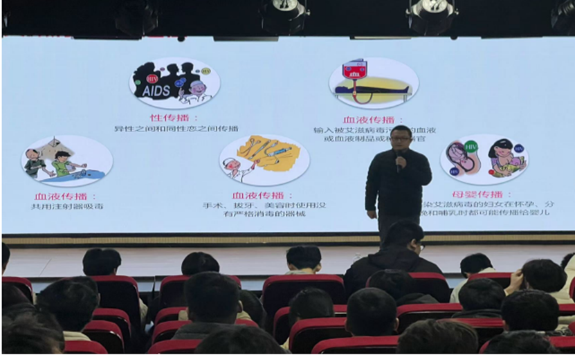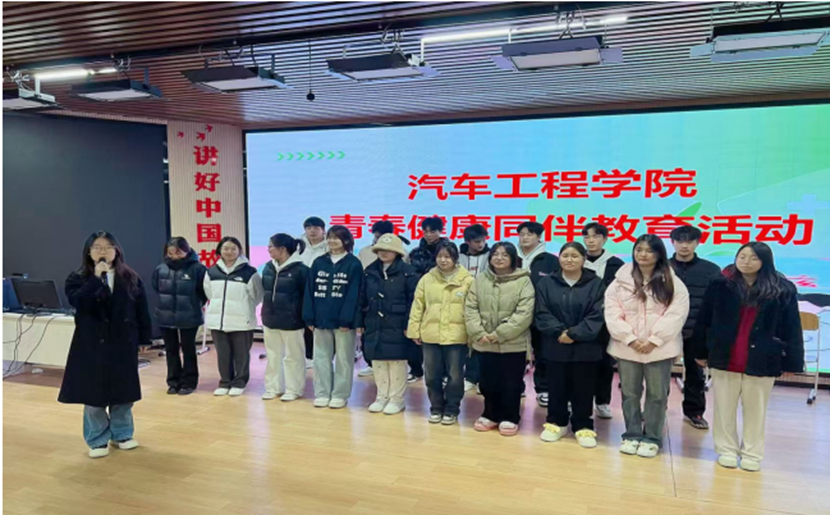为了进一步推动我校大学生心理健康教育工作,打造青春健康教育“12345”实践育人工程育人模式,增进新生班级凝聚力,提高关注青春健康意识。汽车工程学院青春健康同伴社于12月2日晚在北区一楼多功能报告厅开展“青春相伴,共同防艾”青春健康同伴教育活动,学生科张瑞林老师协同24级中高职各班学生代表共同参与此次活动。