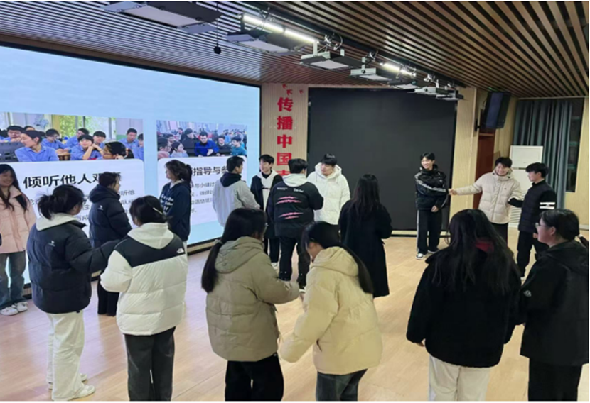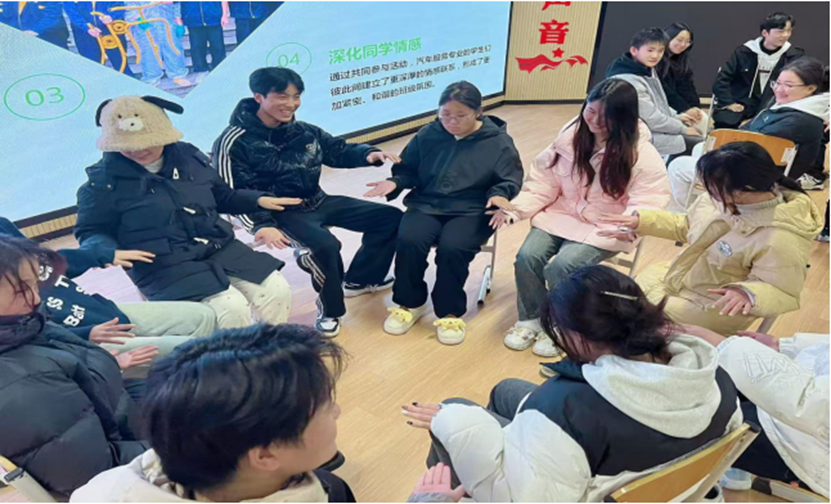 活动最后,主持人带领同学们进行“你抓我躲”小游戏,随着主持人的口令,同学们在欢乐热烈的氛围中进一步了解彼此,也让同学们在快节奏生活中释放了压力,暂时放下学业的重担,提升了幸福感。