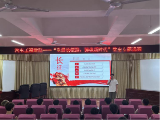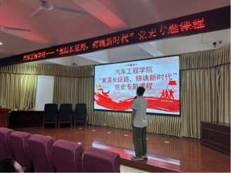 为了深入学习贯彻党的历史,传承红色基因,2024年6月5日,汽车工程学院举办了主题为“重温长征路,铸魂新时代”的党史专题课程。此次课程聚焦中国共产党的光辉历程,特别是长征这一历史壮举,旨在引导学生深刻理解长征精神,坚定理想信念,激发奋斗动力。