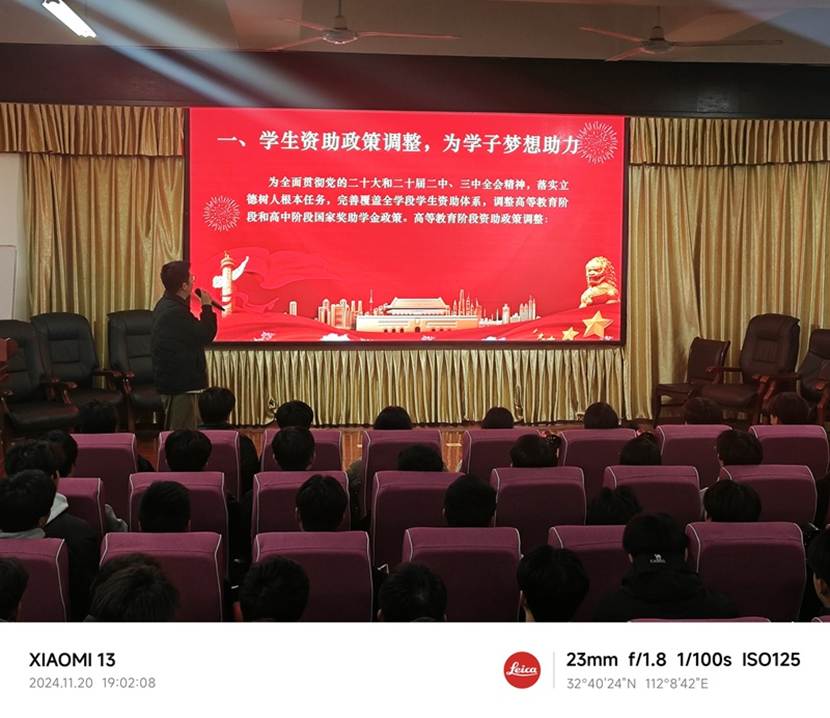 活动伊始,汽车工程学院马翼飞老师为在场的同学们深入浅出地讲解了国家对学生资助最新调整的政策。马老师以其丰富的经验和专业的知识,将复杂的政策内容转化为易于理解的信息,让每位同学都能清晰地认识到自己可能获得的资助机会。