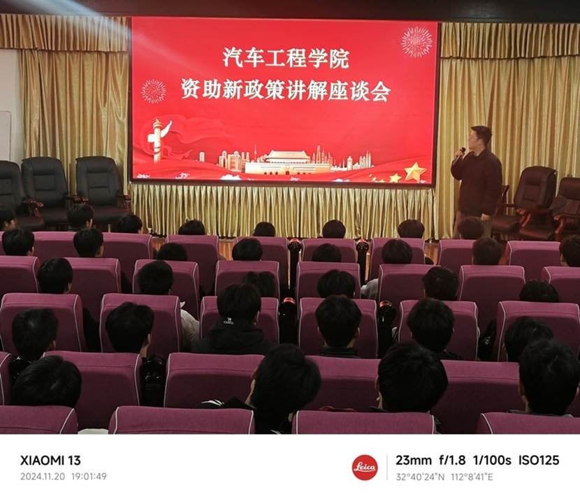 为全面贯彻党的二十大和二十届二中、三中全会精神,落实立德树人根本任务,汽车工程学院于11月20日举办资助新政策讲解会,不仅为同学们提供一个了解高等教育阶段国家奖助学金最新调整政策的平台,更是一个激励同学们追求学术**和职业发展的契机。