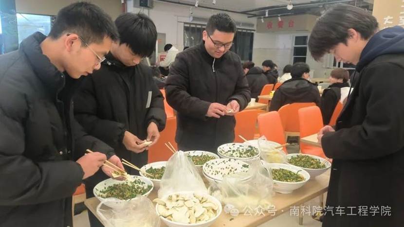 为加强同学们对中华传统文化的理解,感受节日氛围,传递温暖与关怀,2024年12月19日晚,汽车工程学院辅导员李哲明老师带领汽车检测与维修技术2401班的学生们在学生餐厅开展了一场温馨的包饺子活动。副院长柳涛亲临现场,与学生们一同欢庆冬至佳节。活动由第二餐厅9号窗口好粥道倾情赞助 。