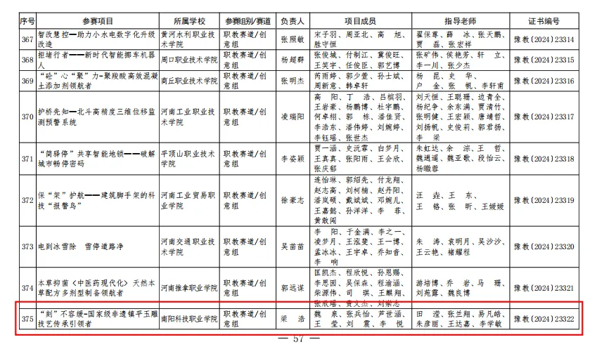中国国际大学生创新大赛(原“互联网+”大赛)由教育部等多家单位共同主办,旨在鼓励和培养大学生创新创业意识和能力。本届大赛由河南省教育厅等十部门共同主办,共有来自143所高校的超28.6万个项目报名参赛。其中,职教赛道共有来自省内41所高校的120项作品晋级线下路演决赛。