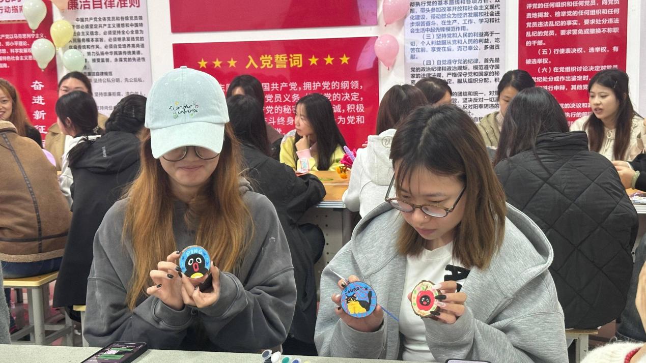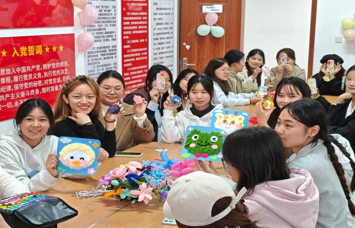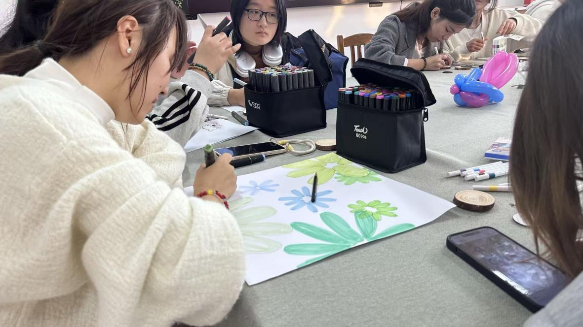 10月29日,“巧手传情,艺述心声”绘画与手工创作活动在学院活动室拉开帷幕,毛毡画、DIY冰箱贴、绘画书签等创作区域整齐排布,五彩毛线、颜料、卡纸等材料铺满桌面。