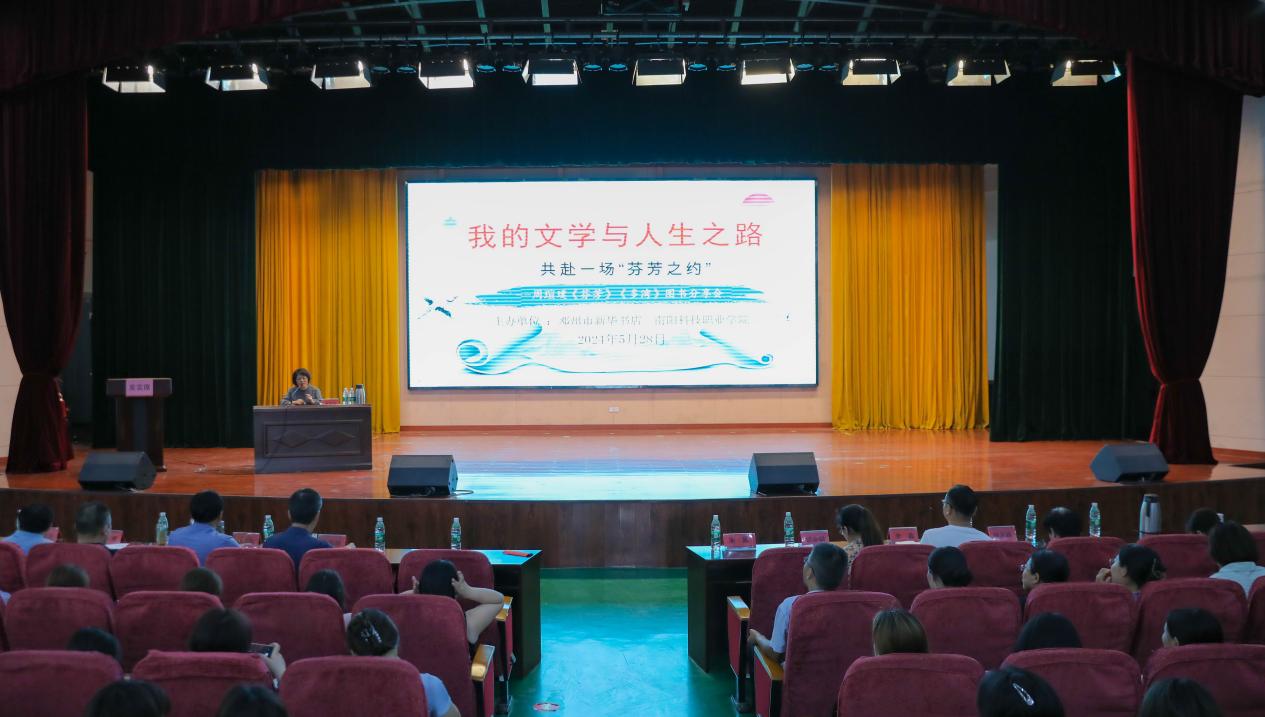 作家周瑄璞以《我的文学与人生之路》为主题,为我们讲述了她的个人创作经历和心得,平易近人,娓娓道来,犹如涓涓细流,温润身心,给我们呈现了一场丰盛的文化大餐。周瑄璞,中国作家协会会员。著有长篇小说《多湾》《芬芳》等。获中国女性文学奖、柳青文学奖、河南省第十三届精神文明建设“五个一工程”奖。她的长篇小说《芬芳》入选2023年度“中国好书”。