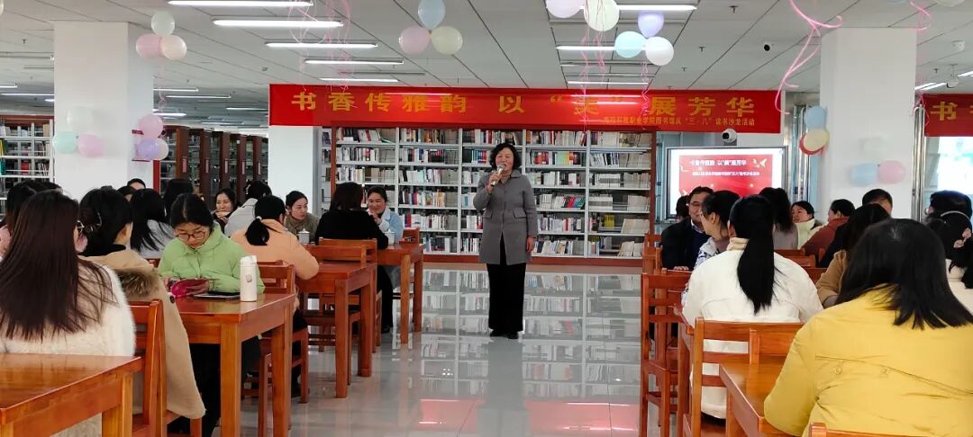 为庆祝第114个“三八”国际妇女节,深入推进全民阅读活动,进一步凝聚巾帼力量,持续激发广大女教职工阅读热情,不断提升阅读水平,建设书香校园,提升学校文化品味,3月8日下午,南阳科技职业学院工会(妇联)联合图书馆共同举办了读书沙龙活动。出席本次活动的学校领导有党委书记卢明存,副书记黑晓森,副校长丁光雪、崔继栋。工会(妇联)、图书馆工作人员、巾帼代表80余人参加了活动。