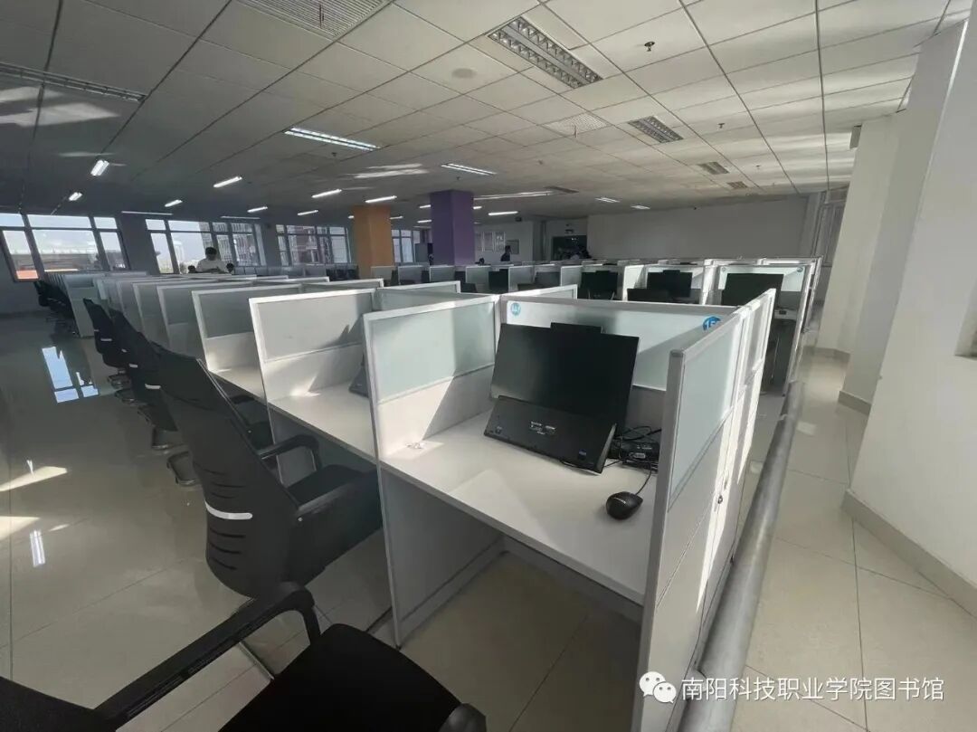 都说时间是自己的主人,那就给自己充充电吧!电子阅览室欢迎南科学子的到来。一排排独立的电脑桌,在网络中阅读自己感兴趣的书籍。