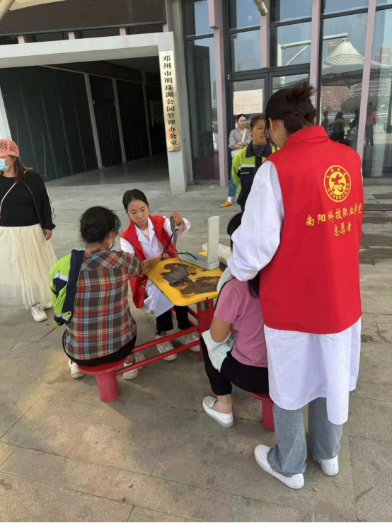 “九九”重阳节,浓浓敬老情。在重阳节来临之际,为大力弘扬孝亲敬老传统美德,卫生健康学院学生科于10月11日走进邓州市明珠湖畔开展敬老助老活动,为周边老年居民献上了健康宣教与义诊的温暖礼遇。