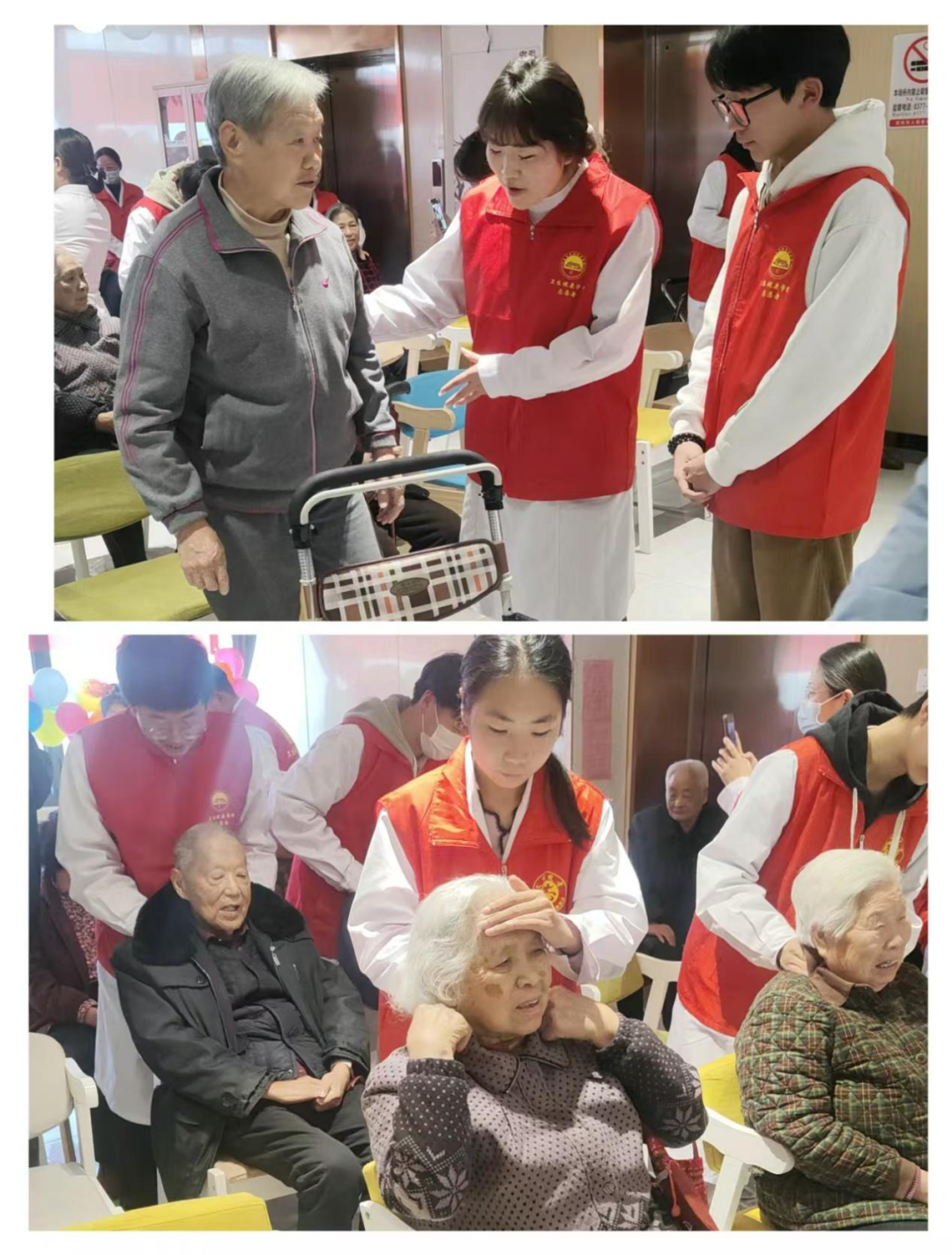 活动最后,中医康复技术专业的学生们在老师的指导下,为老年朋友们提供了肩颈按摩、手部穴位按摩等志愿服务。他们专业的技艺、贴心的服务,让老年朋友们深切感受到了来自社会的关爱与温暖。