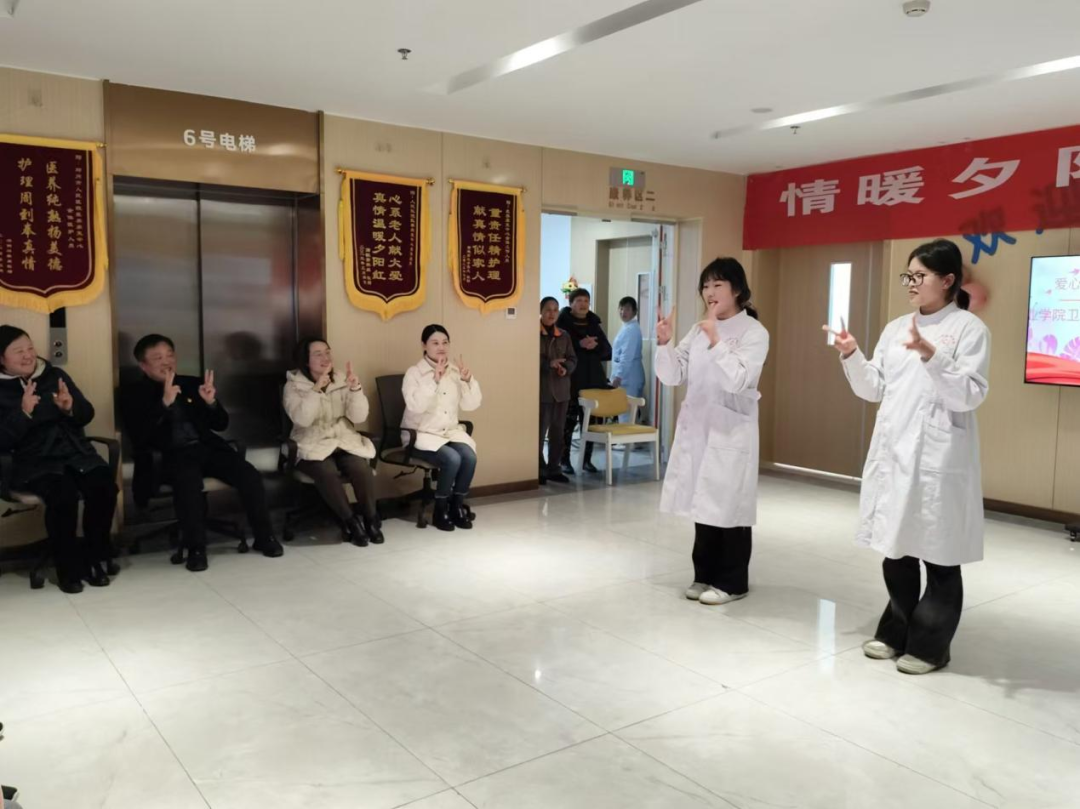 活动中,还设置了互动环节。猜谜语、接龙游戏等简单易懂的互动游戏,让老年朋友们与学生们共同参与其中。这不仅增加了活动的趣味性,也让老年朋友们在欢乐中锻炼了思维能力和动手能力。同时,学生们还带领老年朋友们做手指操、练习八段锦等动作,帮助他们活动筋骨、增强体质。