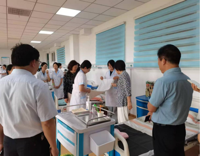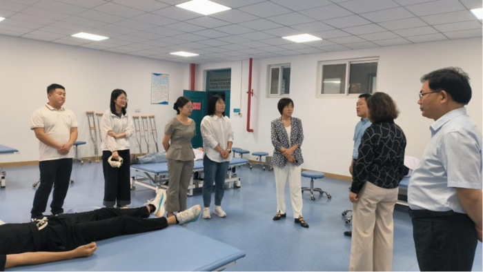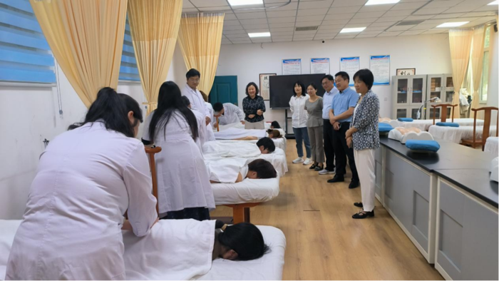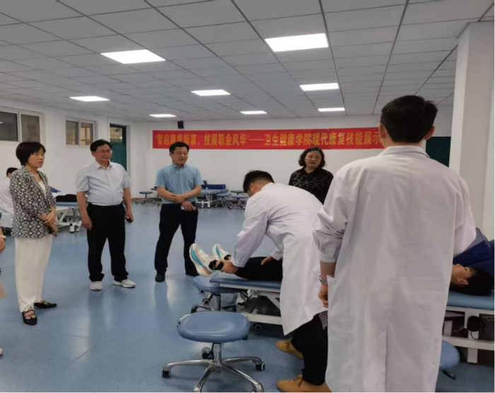 中医康复技术、智慧健康养老服务与管理、护理等专业在5号实训楼有序开展技能达标考核活动,校党委书记李莉、副校长丁光雪、教务处处长许大春等亲临现场观摩指导。