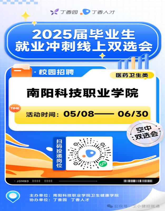 为进一步拓展学生就业渠道,我院紧抓毕业生返校技能考核契机,举办线上线下双选会,为毕业生搭建了多元就业平台。线上双选会与丁香人才网深度合作,204 家单位积极参与,累计提供 302 个就业岗位,覆盖多领域专业需求。线下双选会亮点纷呈,河南信合医院、豫明眼科、光明眼科医院、邓州金英杰中医院、吴氏福远堂等 17 家企业现场揽才,与毕业生面对面交流洽谈。本次双选会有效整合线上线下资源,为毕业生与用人单位搭建高效对接桥梁,实现了毕业生“精准就业”与企业“高效用人”的双赢目标,助力卫健学子成就职业梦想,为区域大健康行业输送了高技能人才。