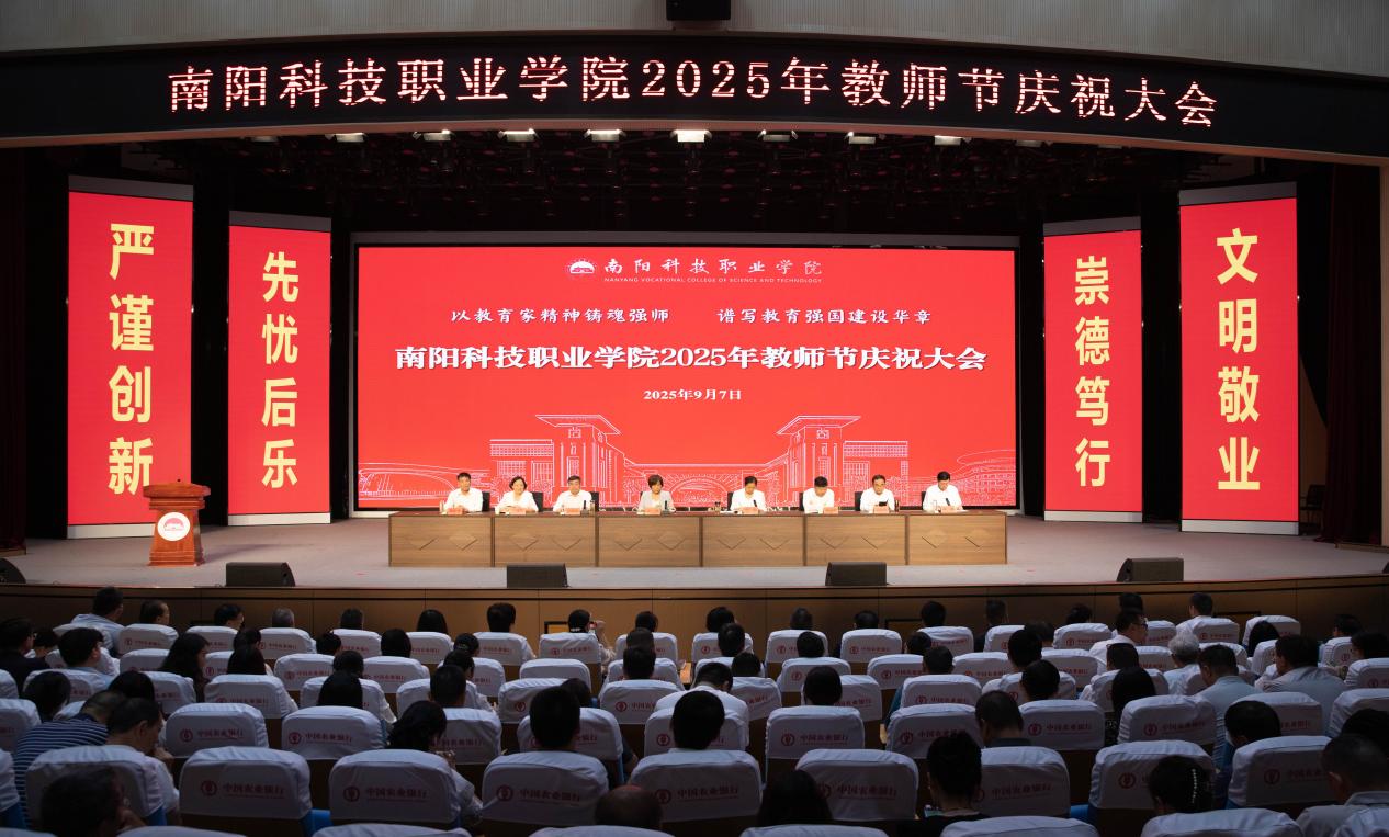 9月7日上午,南阳科技职业学院2025年教师节庆祝大会在星海艺术中心举行。班子成员李莉、郭淼、黑晓森、张定群、丁光雪、崔继栋、邓年令、刘彦出席会议,全体教职员工、学生代表参加会议。大会由党委副书记黑晓森主持。