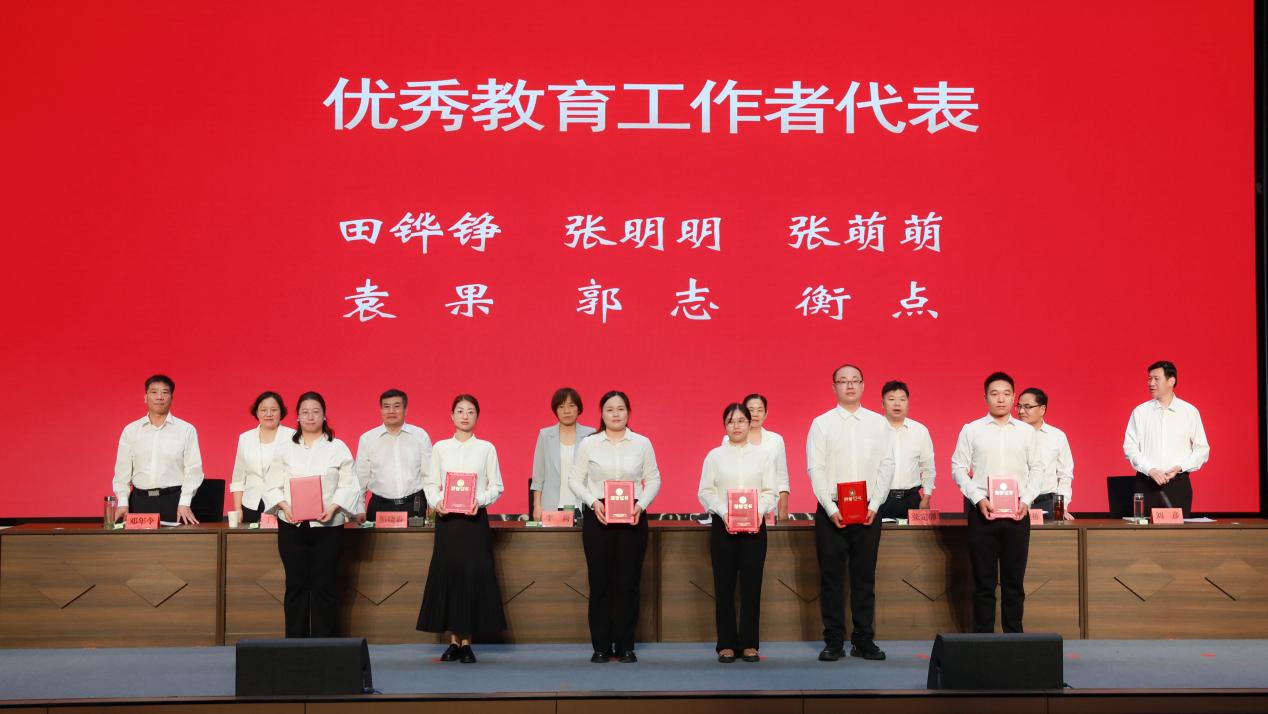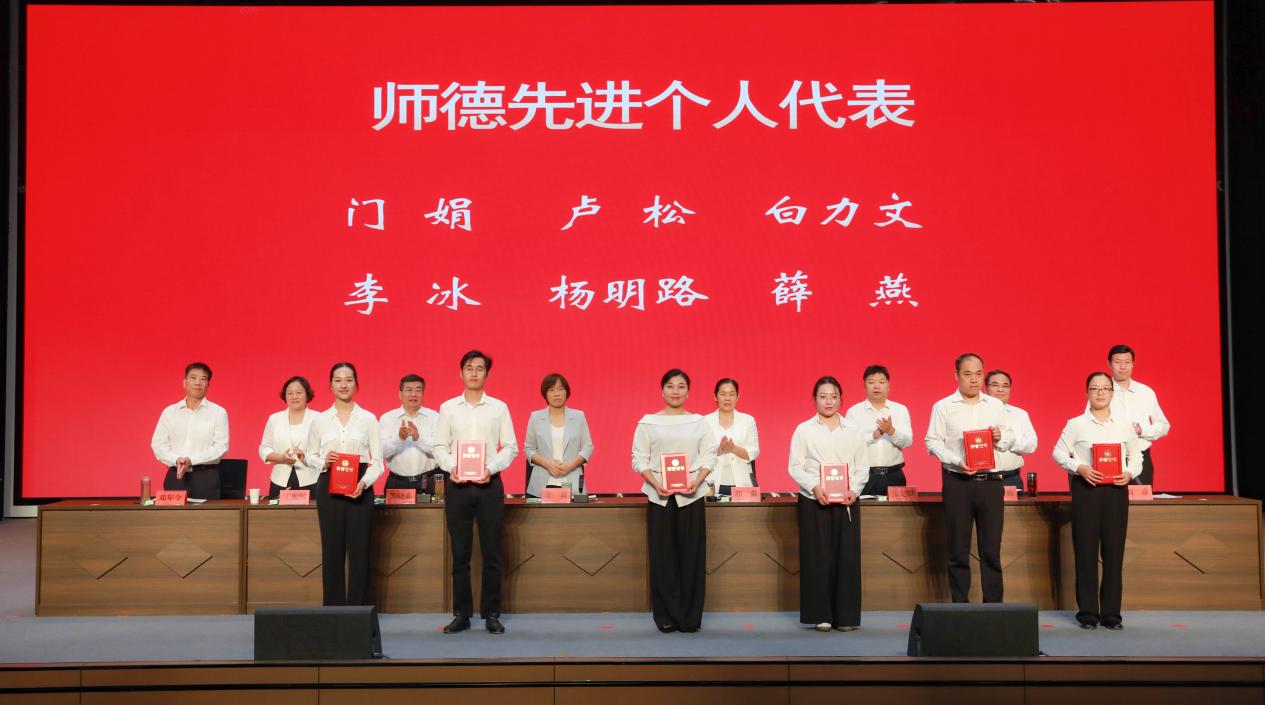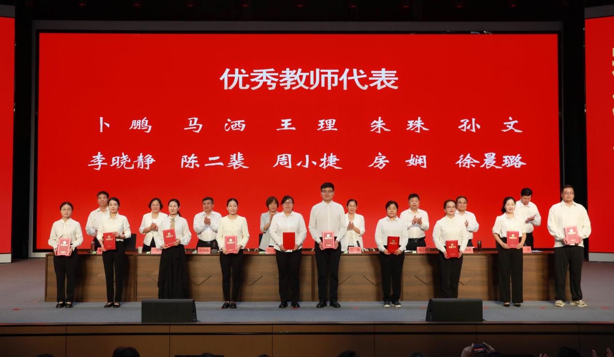 校领导向优秀教师、教育工作者、师德先进个人和优秀辅导员(班主任)代表颁发荣誉证书。